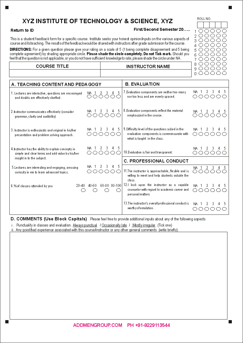 Example of OMR Based Feedback Form Used for Quality Survey in Workshop